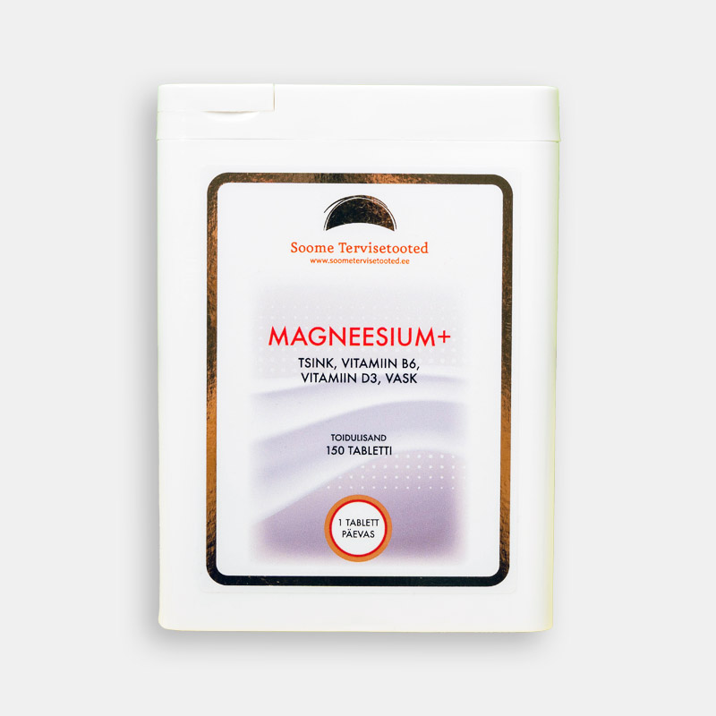 Magneesium+ on hoolikalt koostatud toode, mis sisaldab täiendavalt tsinki, vaske, D- ja B6-vitamiini, et suurendada rakkudes magneesiumi imendumist ja kasutamist. Magnesium+ võib võtta koos teiste tervisetoodetega.